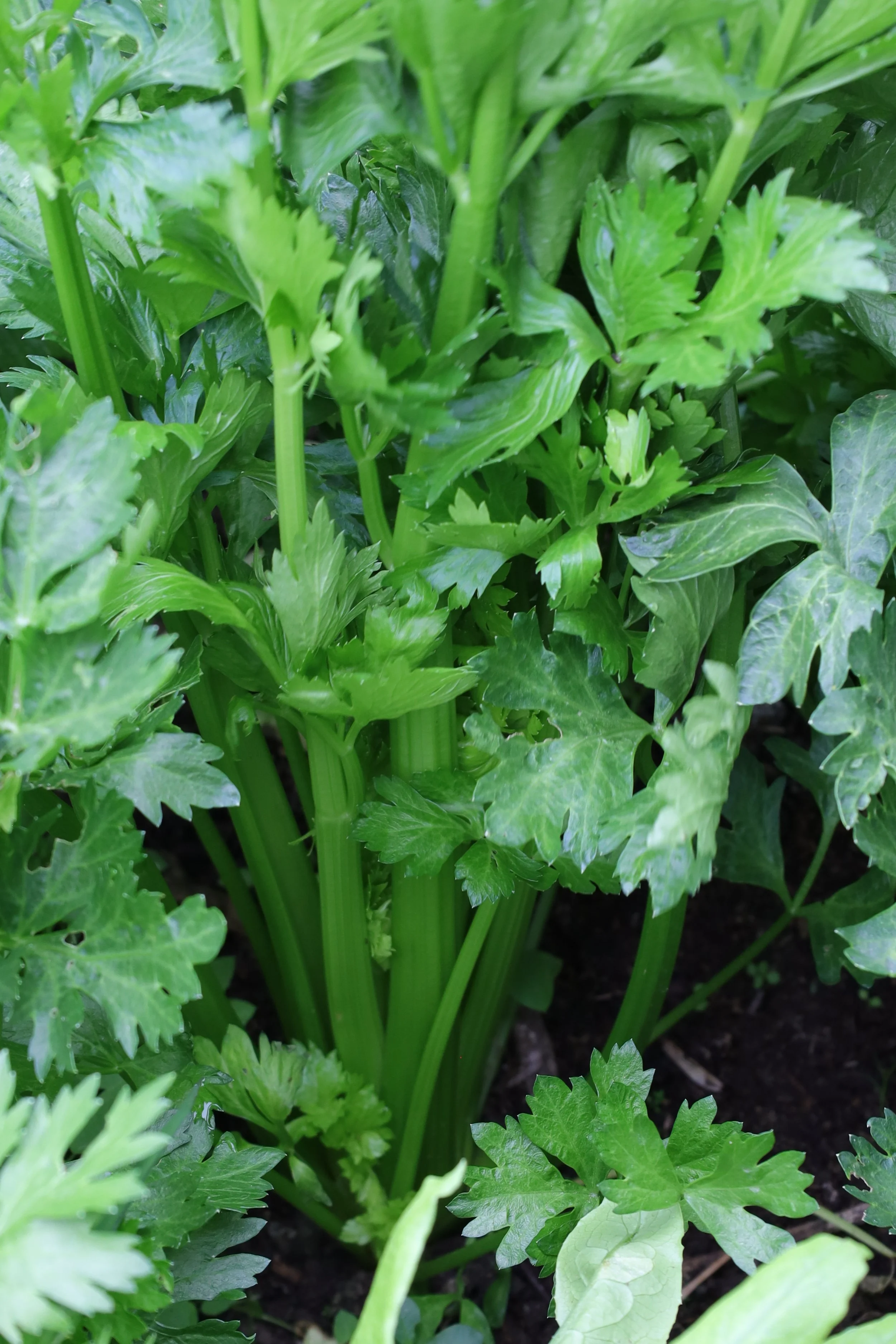 芹菜生長得強壯,幾乎沒有任何可見的害蟲咬痕。